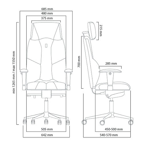 Fotel ergonomiczny Kulik System Business Comfort. Rysunek techniczny oraz wymiary.